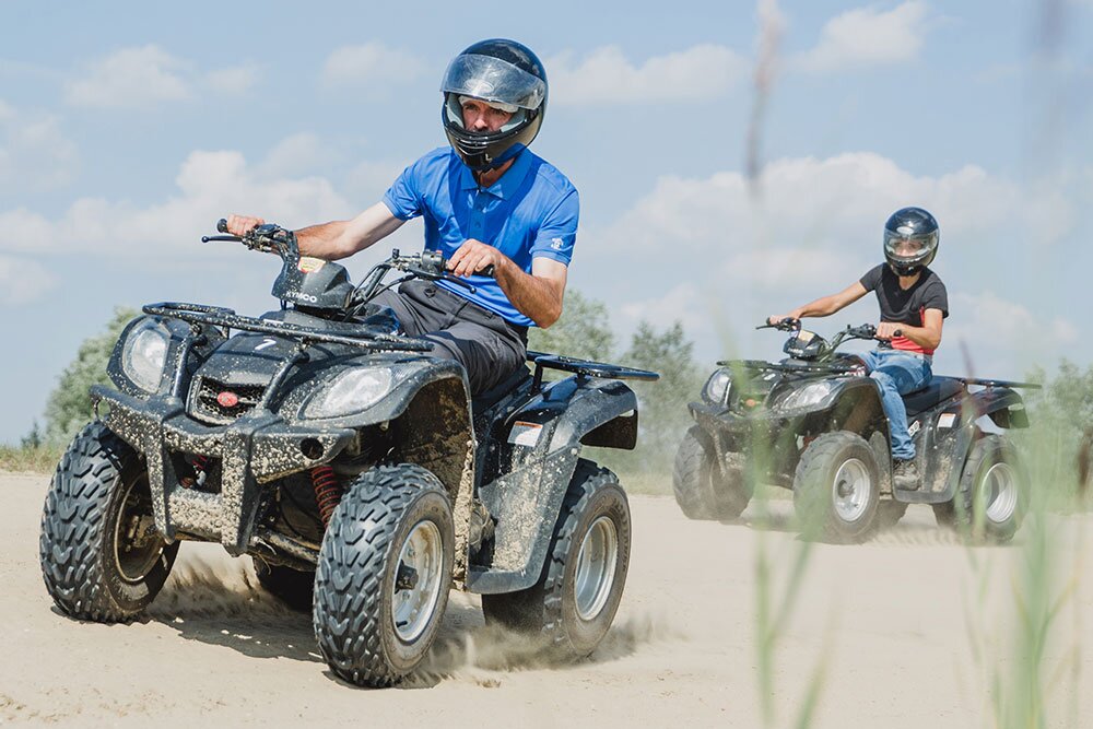 - QUAD RIJDEN: Houd jij de quad onder controle? Het lijkt zo makkelijk. Hoor de wind langs je helm suizen, maar zorg ervoor dat je de quadbike volledig onder controle hebt. Eenmaal vertrouwd met alle aspecten van deze motor op vier wielen? Leg dan het parcours af waarbij goede samenwerking en discipline de sleutel tot succes zijn!