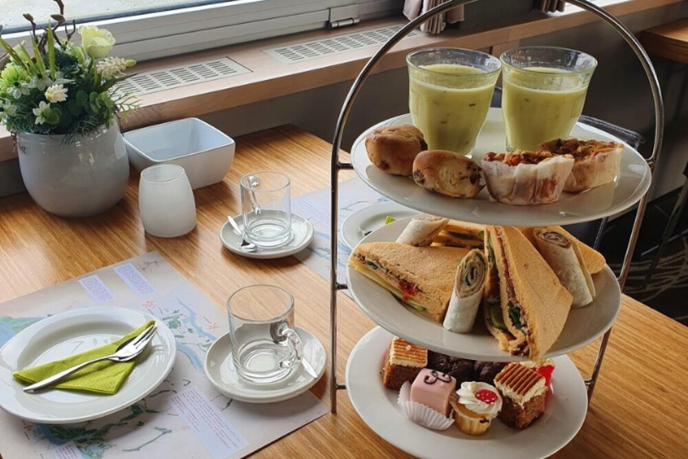 Tijdens de tocht is de koffie en thee inclusief. De high tea bestaat uit;