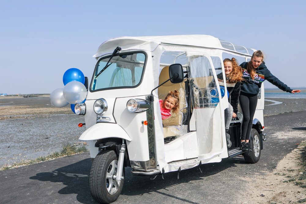 De elektrische Limo TukTuk’s bieden plaats aan 5 passagiers. Ze halen een snelheid van 45 km per uur!